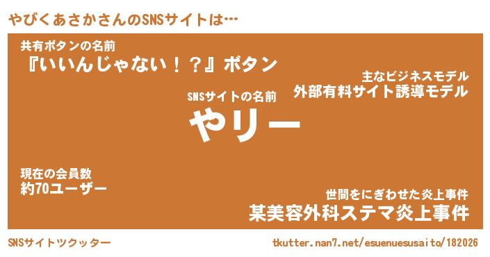 | 男性向けラノベタイトル風あだ名 | 『やびくあさかの憂鬱』 |