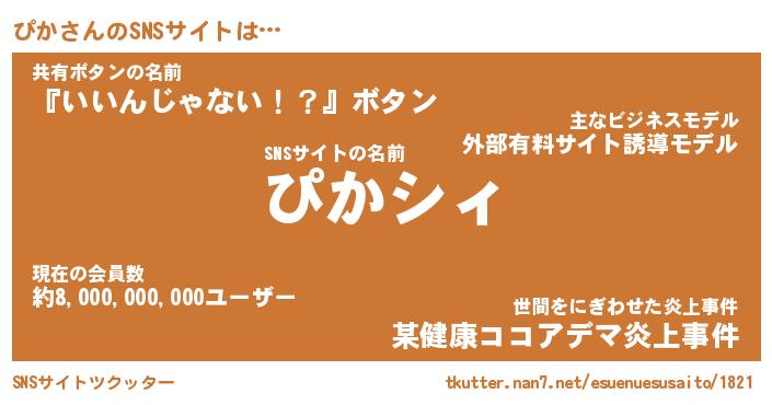 | 男性向けラノベタイトル風あだ名 | 『ぴかの憂鬱』『ノーゲーム・ノーピカ』 |