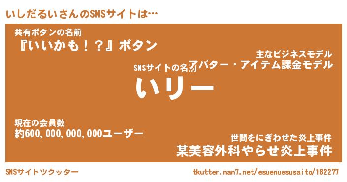 | ヘコむあだ名 | 『いしにー』『なまこ酢』『いしっ子』 |