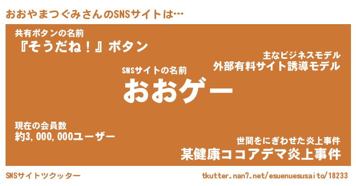 | 欧米人風あだ名 | 『マイケルおおやまつぐみ』 |