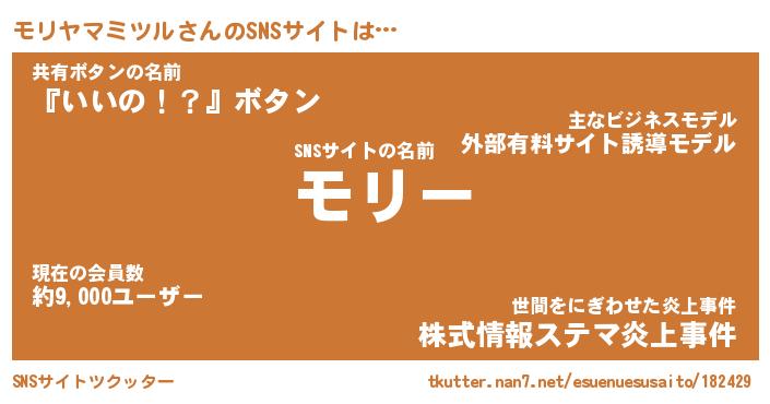 | ヘコむあだ名 | 『モリにゅー』『なまこ酢』『モリを』 |