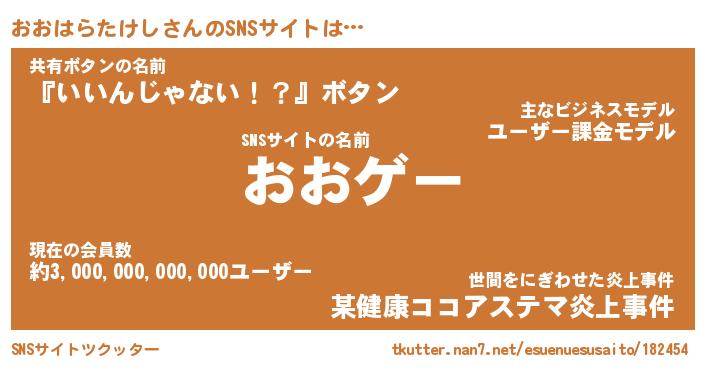 | 女子向けラノベタイトル風あだ名 | 『(仮)おおはらたけしのやんごとなき事情』 |