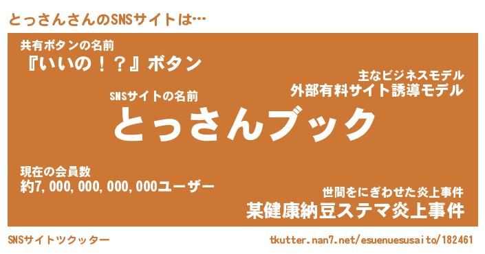 | 意味不明あだ名 | 『ペロリンとっさん』『永久保存とっさん』 |