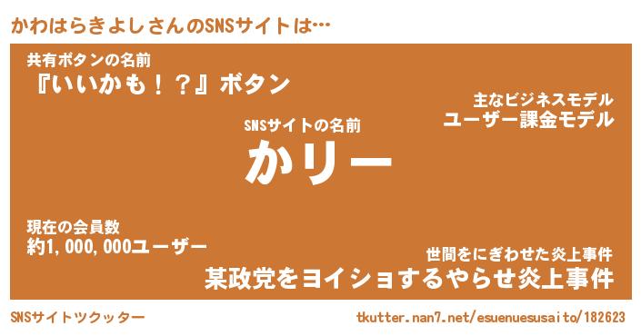 | 男性向けラノベタイトル風あだ名 | 『かわはらきよしの憂鬱』 |