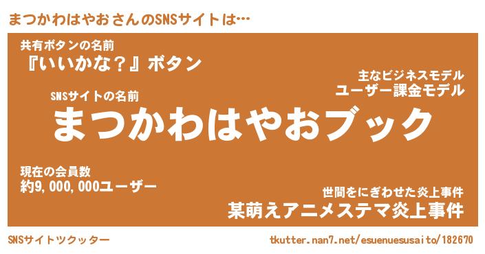 | 肩書あだ名 | 『まつかわはやお店長』 |