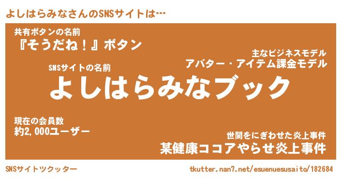 | 男性向けラノベタイトル風あだ名 | 『ヨシハラミナアートオンライン』 |