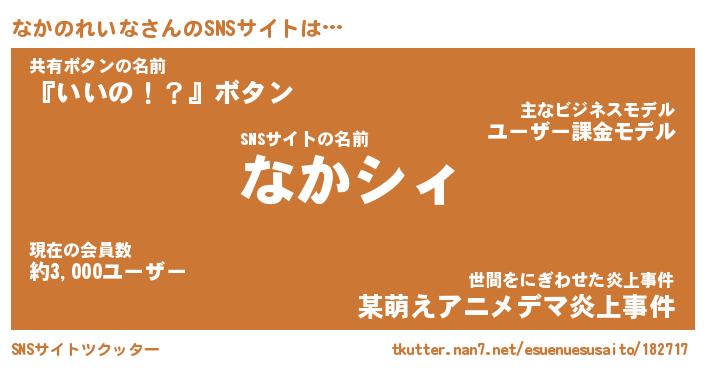 | 男性向けラノベタイトル風あだ名 | 『なかのれいなの憂鬱』 |