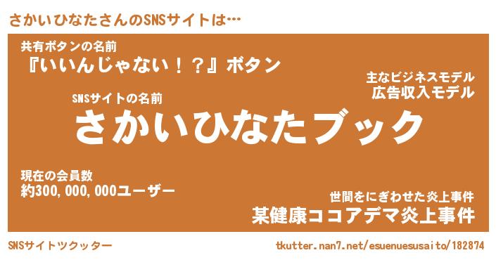 | 胡散臭い通販商品みたいなあだ名 | 『億万長者になれるブレスレット…その名も「さかいひなた」』 |