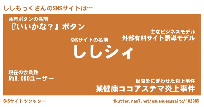| 男性向けラノベタイトル風あだ名 | 『ししもっくの憂鬱』 |