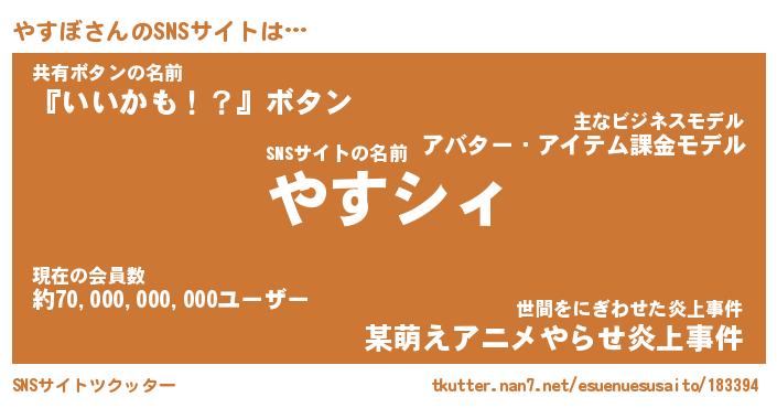 | 男性向けラノベタイトル風あだ名 | 『やすぼの憂鬱』 |