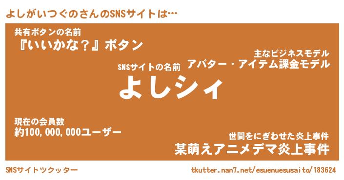 | 肩書あだ名 | 『よしがいつぐの店長』 |