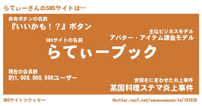 | ヘコむあだ名 | 『らてにー』『なまこ酢』『らてを』 |