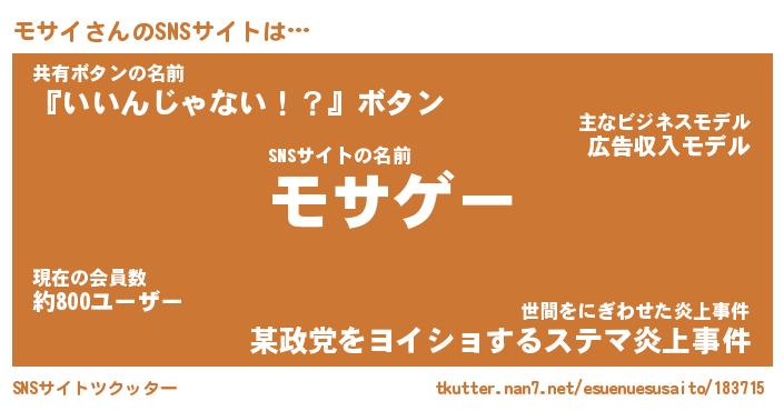 | 男性向けラノベタイトル風あだ名 | 『モサイの憂鬱』 |