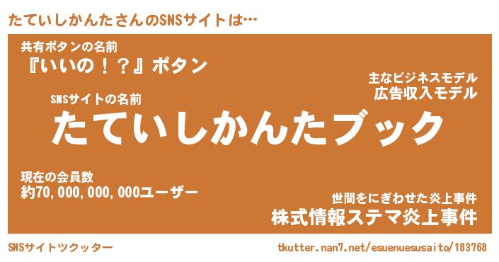 | 肩書あだ名 | 『たていしかんた社長』 |