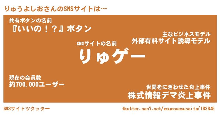 | 肩書あだ名 | 『りゅうよしおCEO』『りゅうよしお塾長』 |