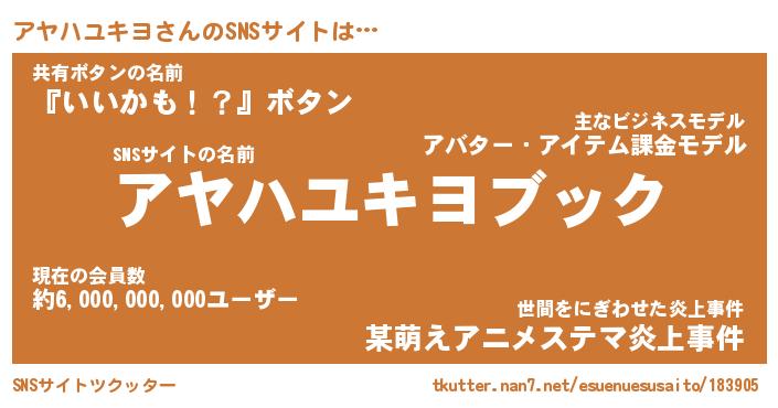 | 欧米人風あだ名 | 『マイケルアヤハユキヨ』 |