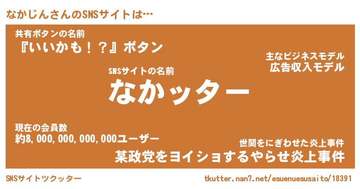 | 男性向けラノベタイトル風あだ名 | 『ナカジンアートオンライン』 |