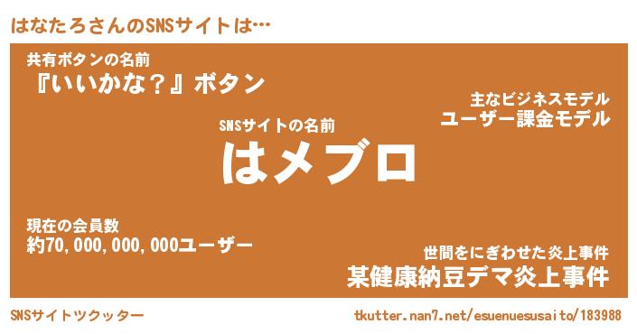 | 意味不明あだ名 | 『ペロリンはなたろ』『永久保存はなたろ』 |
