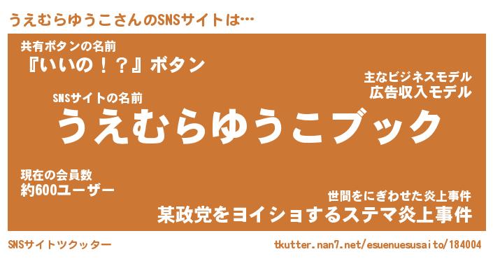| 女子向けラノベタイトル風あだ名 | 『誰かこのうえむらゆうこを説明してください! ~契約から始まるウェディング~』 |