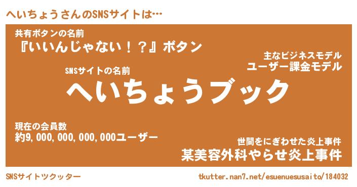 | ヘコむあだ名 | 『へいにー』『なまこ酢』『へい太郎』 |
