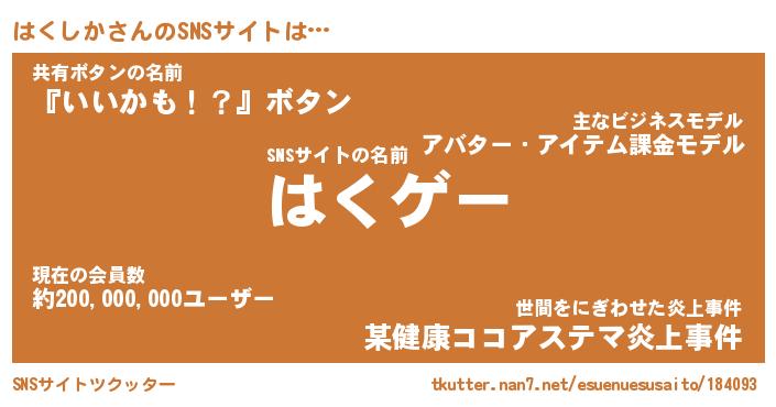 | 意味不明あだ名 | 『ペロリンはくしか』『永久保存はくしか』 |