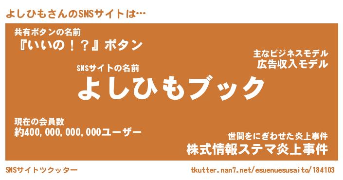 | ファンタジー風あだ名 | 『ヨシフェル』『エターナルヨシヒモー』 |