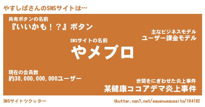 | 意味不明あだ名 | 『ペロリンやすしば』『永久保存やすしば』 |