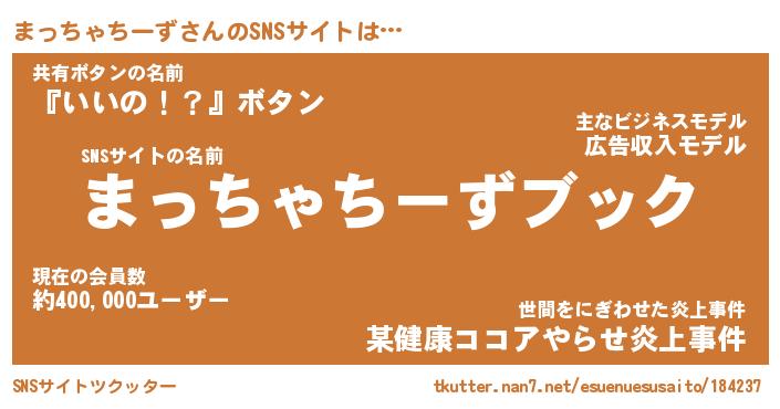 | 胡散臭い通販商品みたいなあだ名 | 『億万長者になれるブレスレット…その名も「まっちゃちーず」』 |