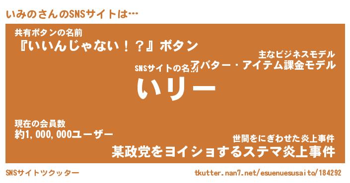 | 肩書あだ名 | 『いみの店長』『いみの総理大臣』 |