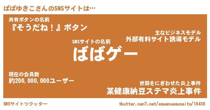 | 肩書あだ名 | 『ばばゆきこ社長令嬢』『ばばゆきこ班長』 |