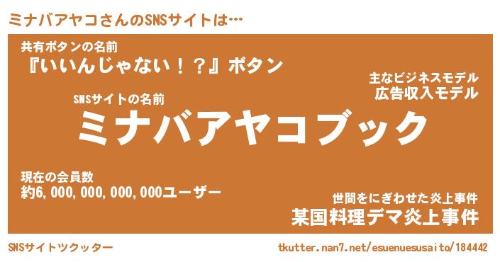 | 男性向けラノベタイトル風あだ名 | 『ミナバアヤコアートオンライン』 |