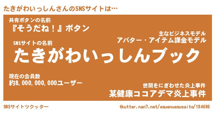 | 胡散臭い通販商品みたいなあだ名 | 『億万長者になれるブレスレット…その名も「たきがわいっしん」』 |