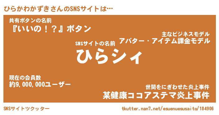 | 女子向けラノベタイトル風あだ名 | 『(仮)ひらかわかずきのやんごとなき事情』 |