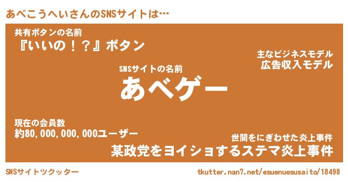 | 胡散臭い通販商品みたいなあだ名 | 『必ず成功するブレスレット…その名も「あべこうへい」』 |