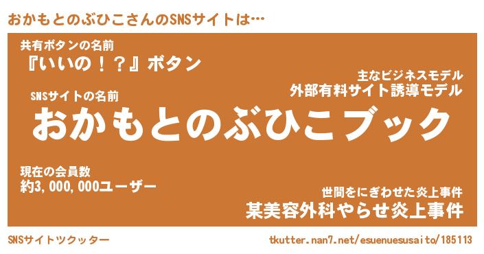 | 伝説のあだ名 | 『封印されしスナイパーおかもとのぶひこ』 |