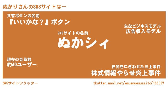 | ファンタジー風あだ名 | 『ヌカフェル』『エターナルヌカリー』 |