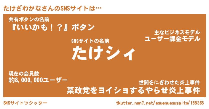 | 胡散臭い通販商品みたいなあだ名 | 『必ず成功するブレスレット…その名も「たけざわかな」』 |