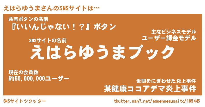 | 肩書あだ名 | 『えはらゆうま御曹司』 |