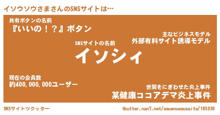 | ポケモン風あだ名 | 『イソチュウ』『イソウダネ』 |