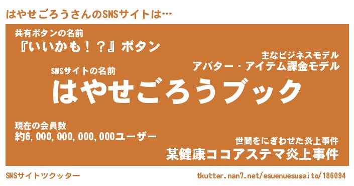 | ポケモン風あだ名 | 『ハヤチュウ』『ハヤセダネ』 |
