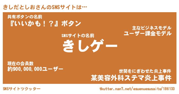| 肩書あだ名 | 『きしだとしお社長』『きしだとしお団長』 |