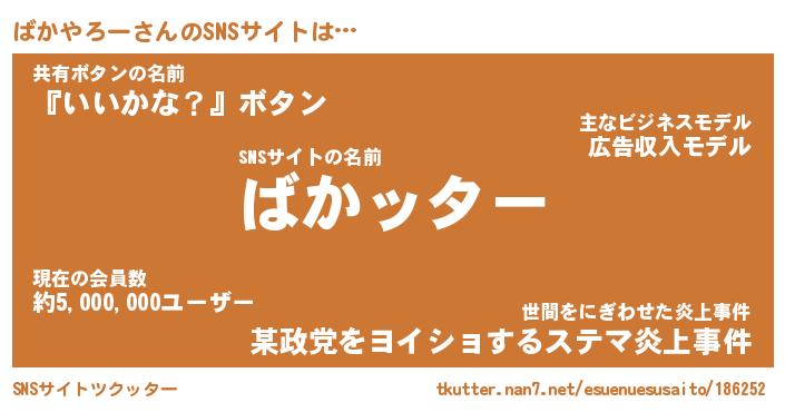 | ツイッター | ばかやろーさんのツイッターID『fukuyoka_kun』 |