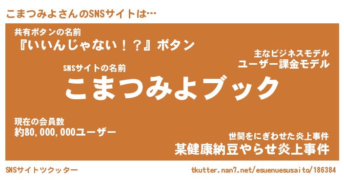 | 胡散臭い通販商品みたいなあだ名 | 『億万長者になれるブレスレット…その名も「こまつみよ」』 |