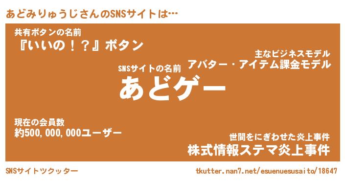 あどみりゅうじさんのSNSサイトをツクッター!