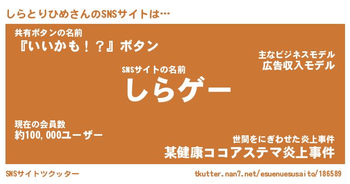 | 肩書あだ名 | 『しらとりひめCEO』『しらとりひめ団長』 |