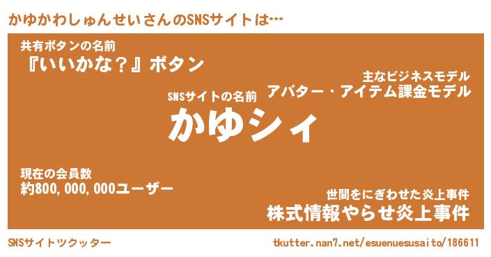 | ヘコむあだ名 | 『かゆっふぃ~』『つくし』『かゆお』 |