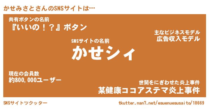 | ファンタジー風あだ名 | 『カセフェル』『エターナルカセミサトー』 |