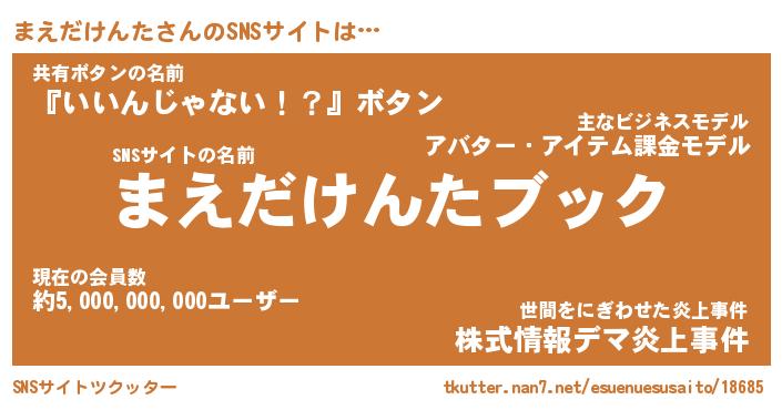 | 肩書あだ名 | 『まえだけんたCEO』『まえだけんた大統領』 |