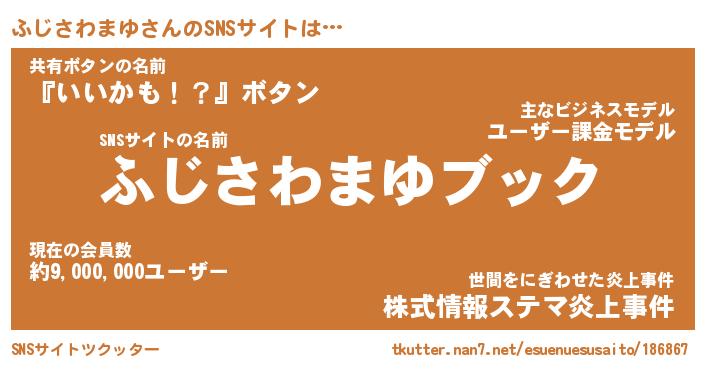 | 恥ずかしいあだ名 | 『プリティーふじさわまゆ』『ふじっちょ』 |