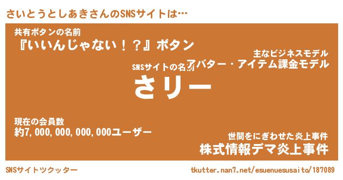 | 肩書あだ名 | 『さいとうとしあき店長』 |
